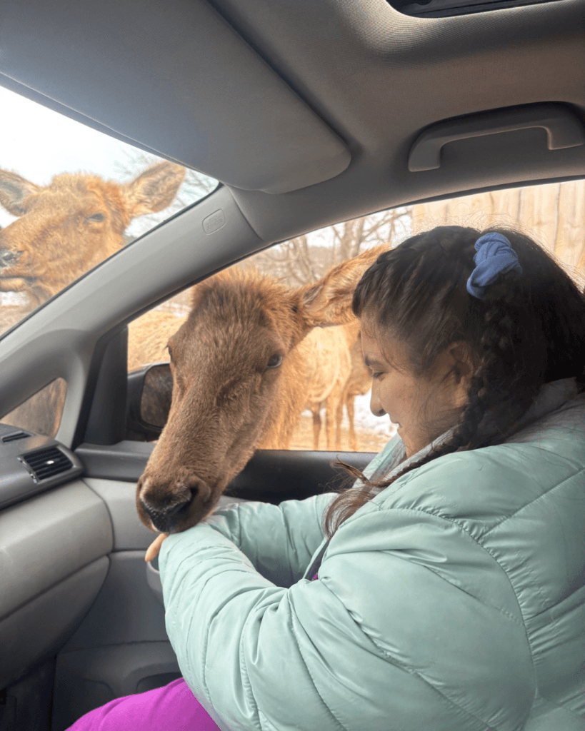 Participants had the chance to see animals like elk, bison, and wolves, and the highlight of the day was when a few friendly deer came right up to the vehicles—especially hoping for carrots!